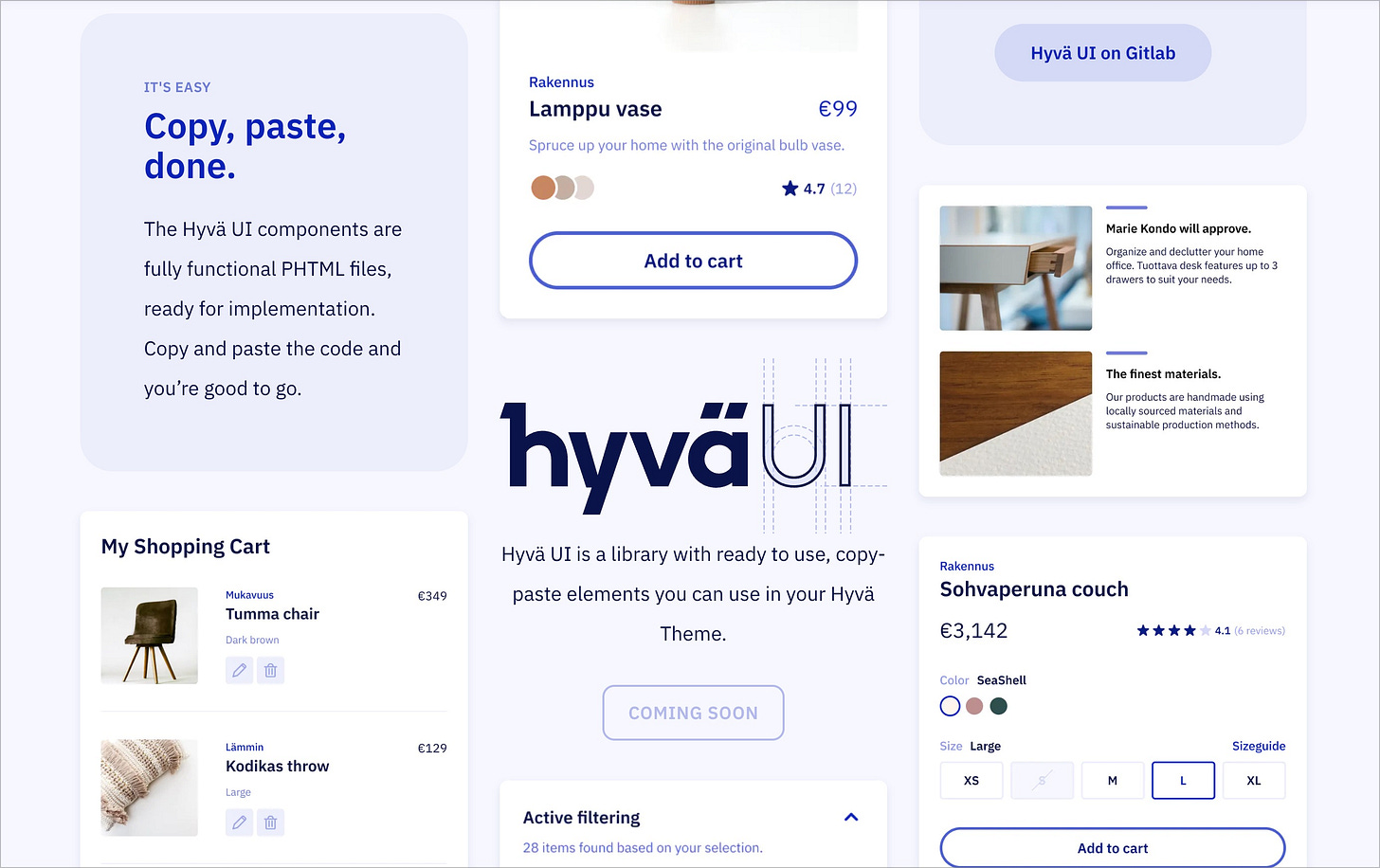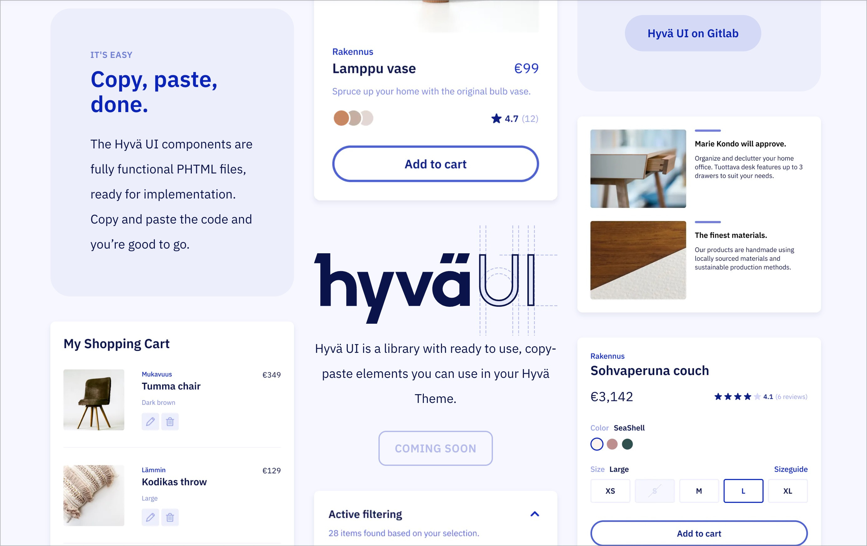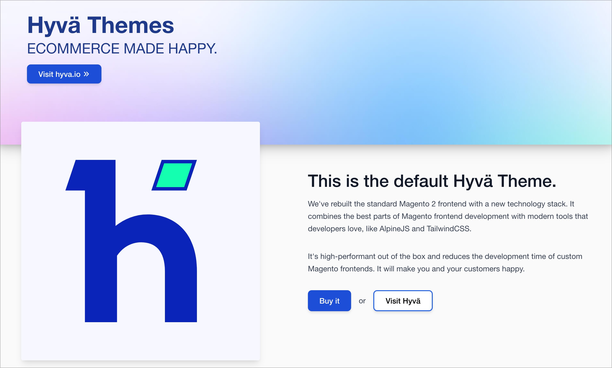 Hyvä es un tema para Magento que, mediante la combinación de una serie de tecnologías web de última generación, está pensado para ofrecer máxima flexibilidad en la implementación de los componentes gráficos de experiencia de usuario que conforman una tienda en línea, desde el punto de vista de los equipos de desarrollo a cargo de dicha tarea.